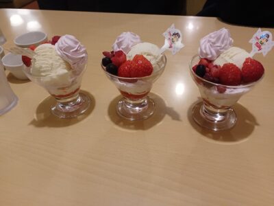 神社に行く前にジョイフルでミニパフェも食べました(笑)。
