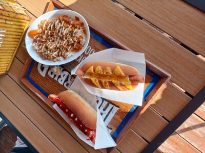 14:00頃 近くのホットドッグ屋さんにて遅めの昼食。
